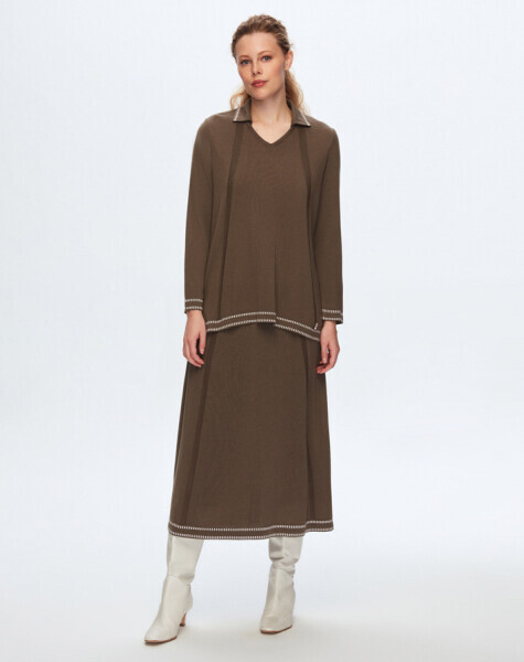 T24K-2014 Örgü Efektli A Kesim Etek DATA-BROWN
