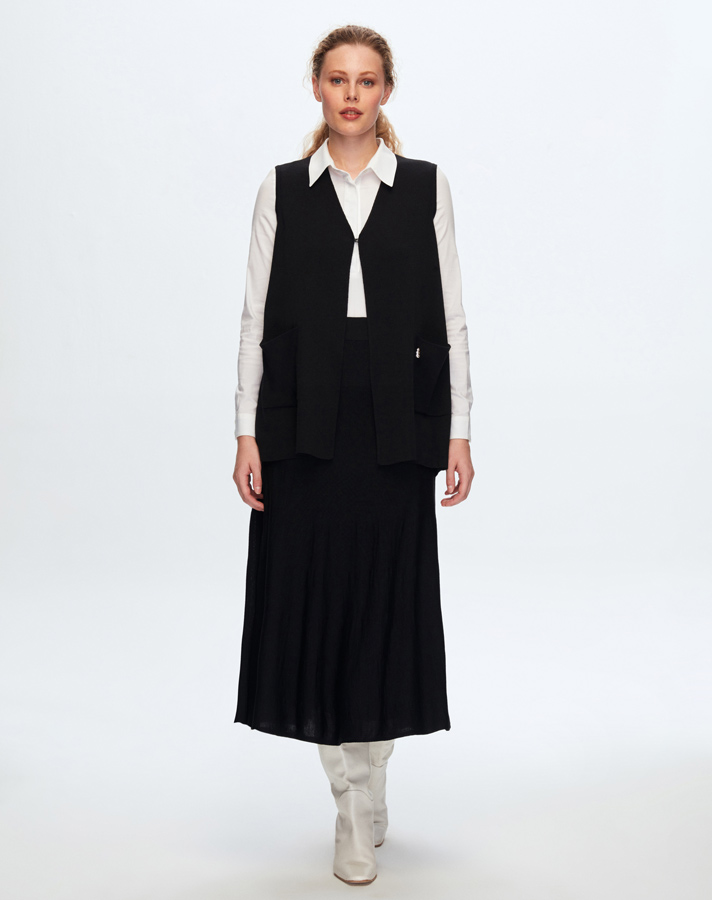 T25K-2009 Plise Şifon Etek BAZA-ANTHRACİTE