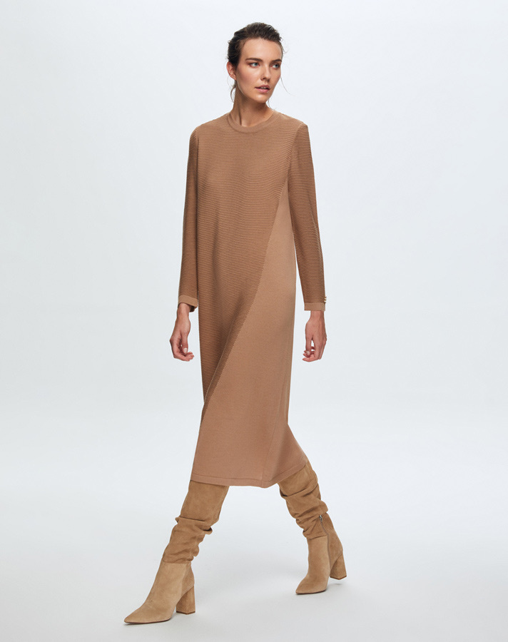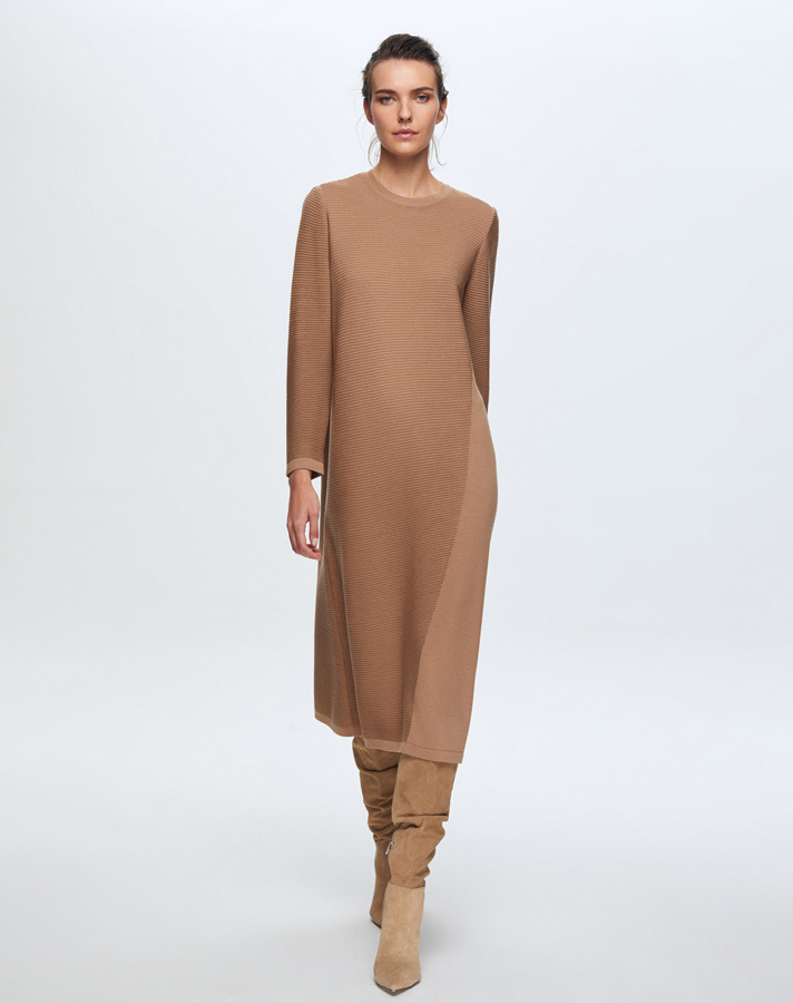 T24K-4001 Fitilli Triko Elbise COMO-CAREMEL