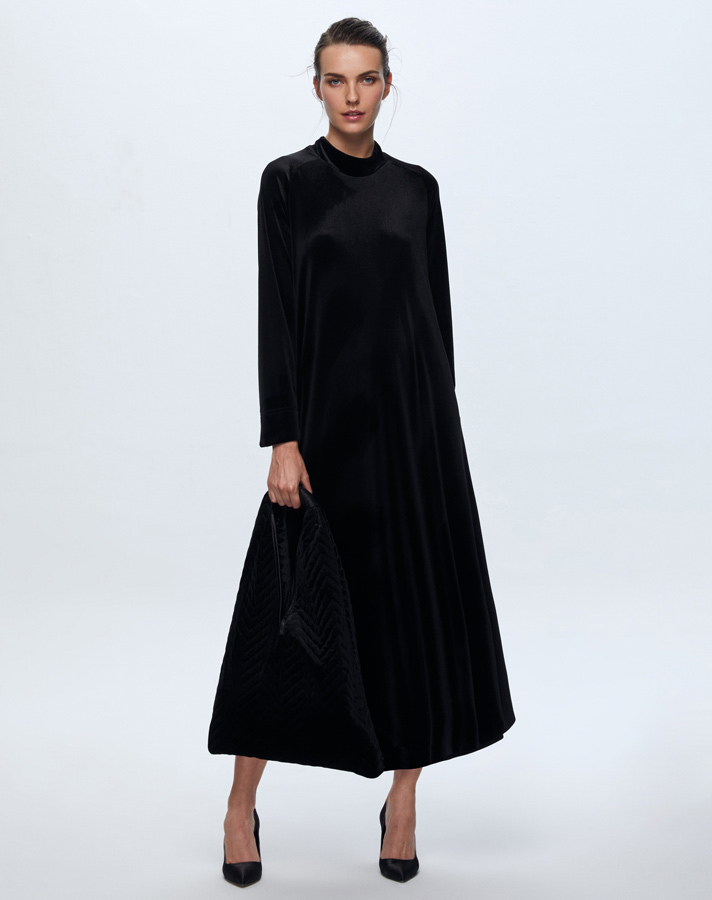 T24K-4003 Uzun Kadife Elbise BLACK