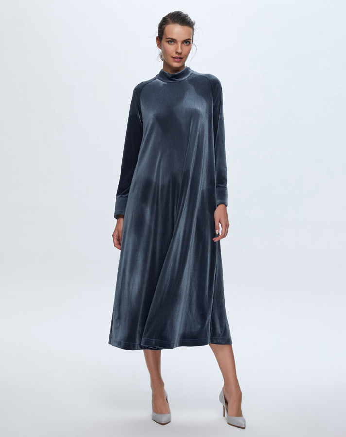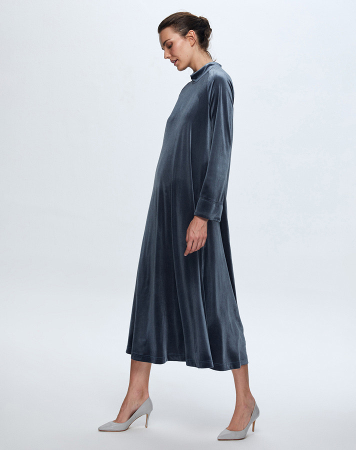 T25K-4002 Dik Yaka Cupro Elbise GREY