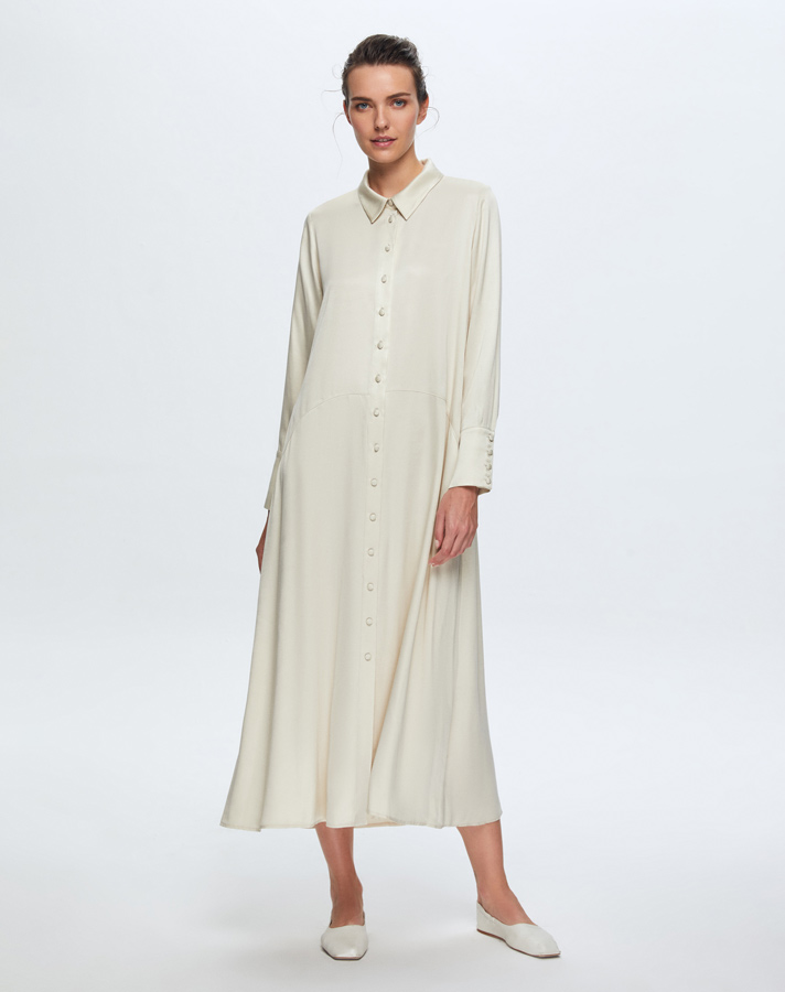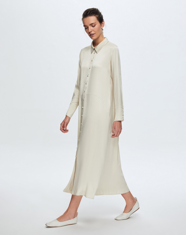 T25K-4002 Dik Yaka Cupro Elbise STONE