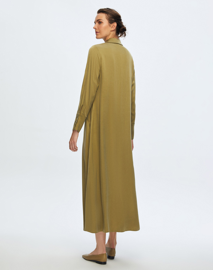 T24K-4006 Uzun Kupro Elbise OLİVE