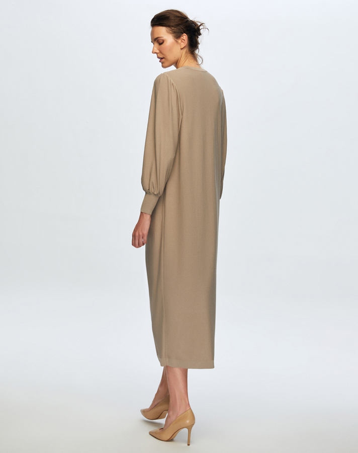 T25K-4002 Dik Yaka Cupro Elbise STONE