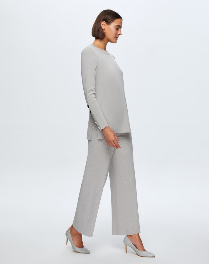 T25K-6024 Dik Yaka Bekletmeli Triko Tunik PB02V-ICE