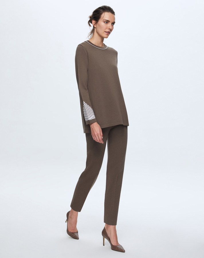 T24K-6002 Örgü Detaylı Triko Tunik DATA-BROWN