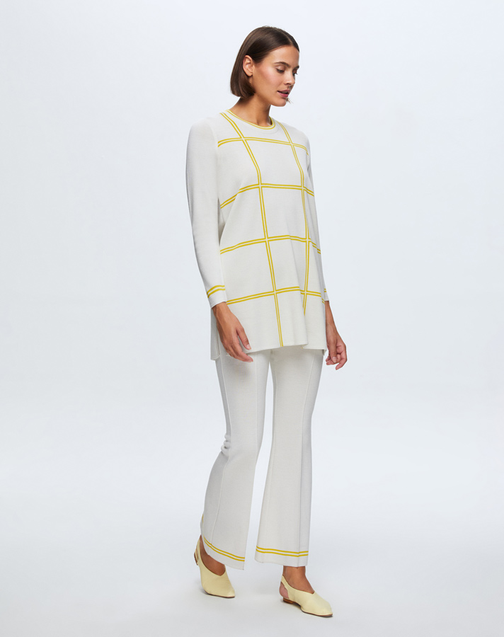 T24K-6003 Kare Desenli Tunik VOLO-SMOKE / ETİCA-YELLOW