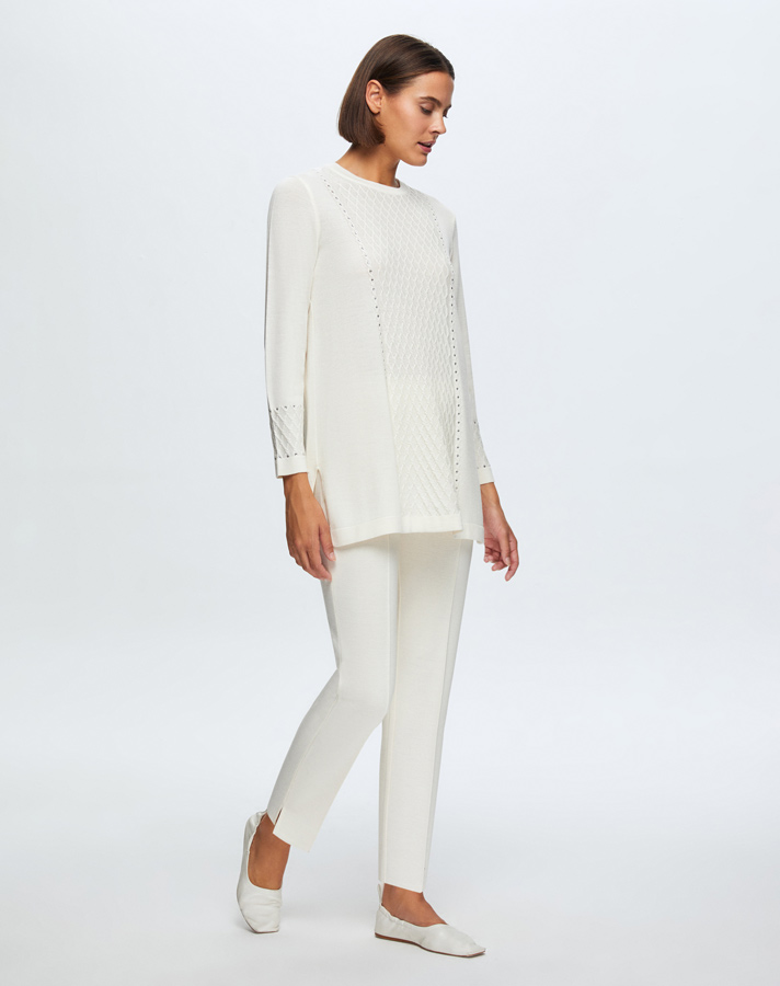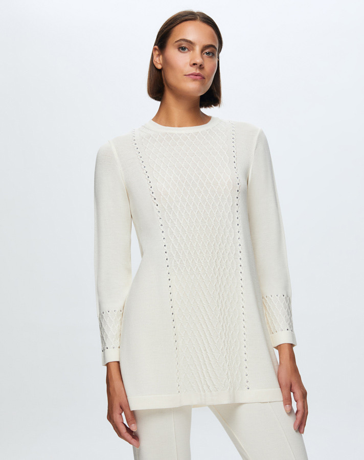 T24K-6006 Saç Örgü Taşlı Tunik FEDE-ECRU
