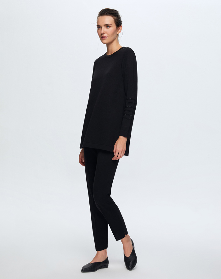 T24K-6008 Kolu Taşlı Tunik BLACK