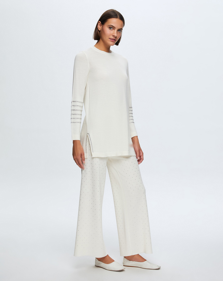 T24K-6008 Kolu Taşlı Tunik FEDE-ECRU