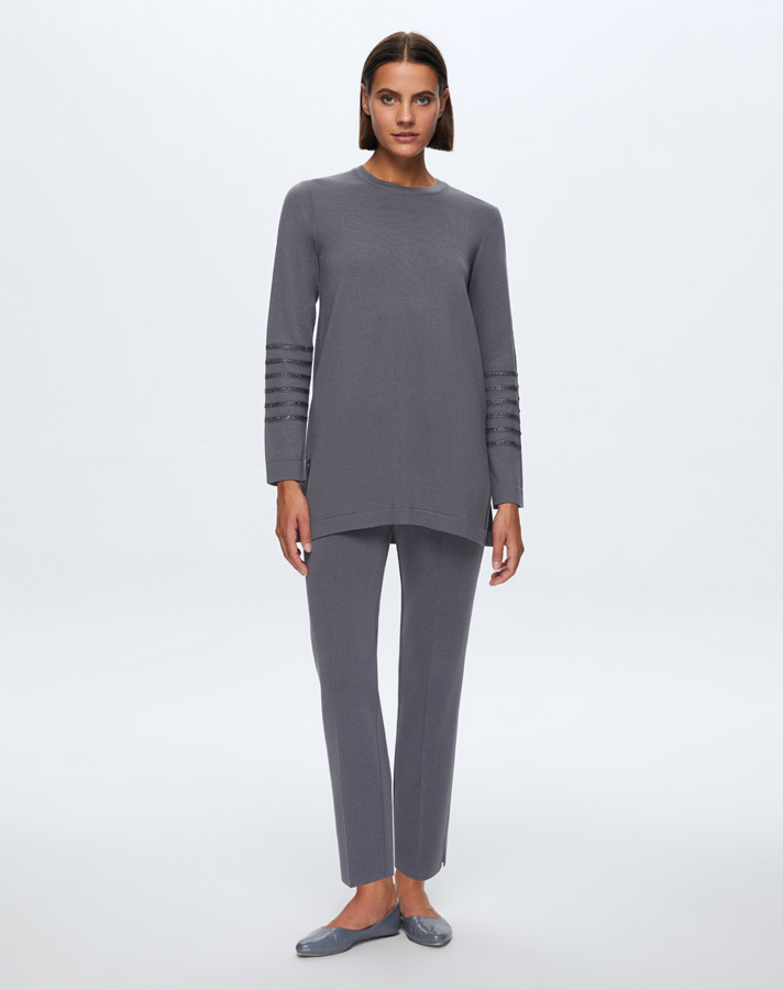 T24K-6008 Kolu Taşlı Tunik OMERO-DARK GREY