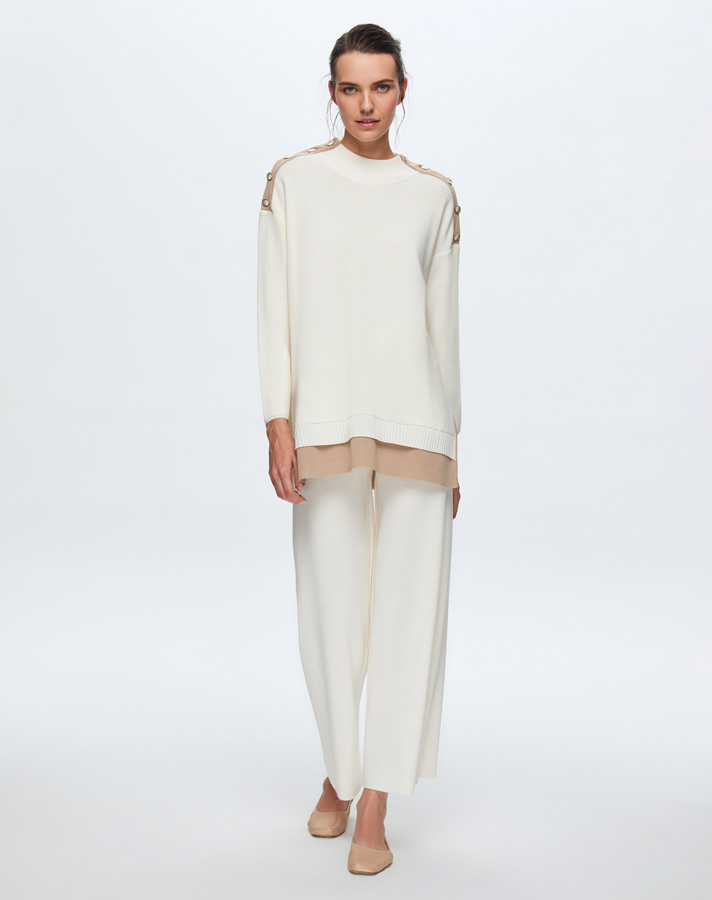 T24K-6009 Renkli Düğme Aksesuarlı Tunik FEDE-ECRU