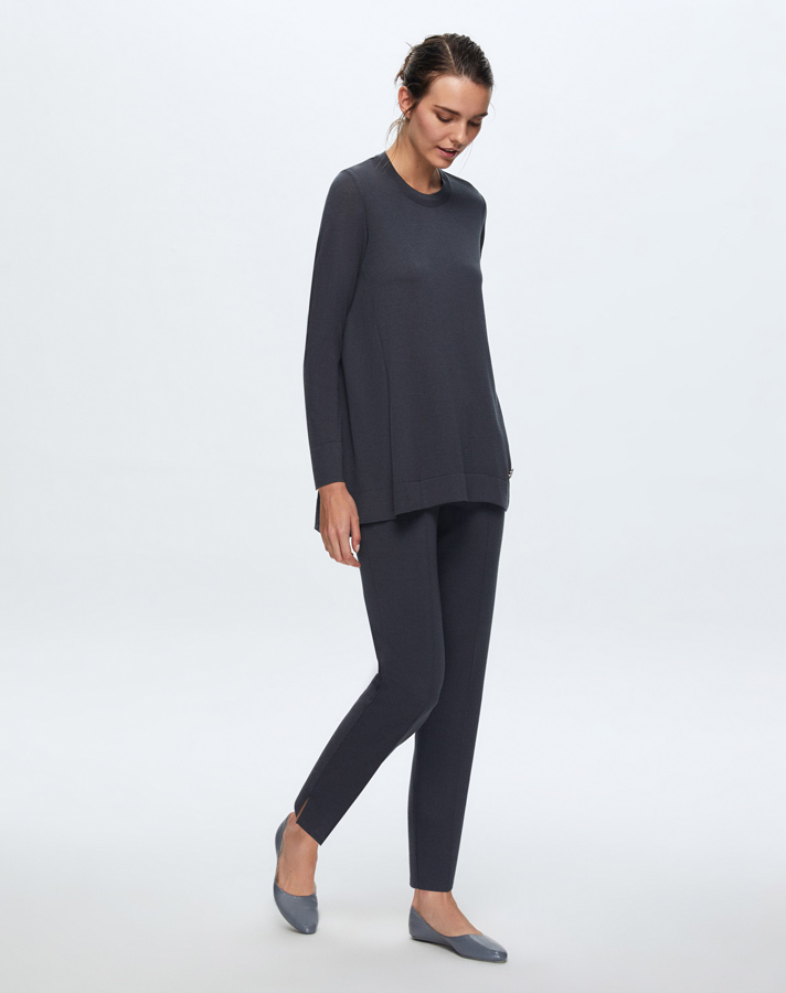 T25K-6024 Dik Yaka Bekletmeli Triko Tunik PB02V-ICE