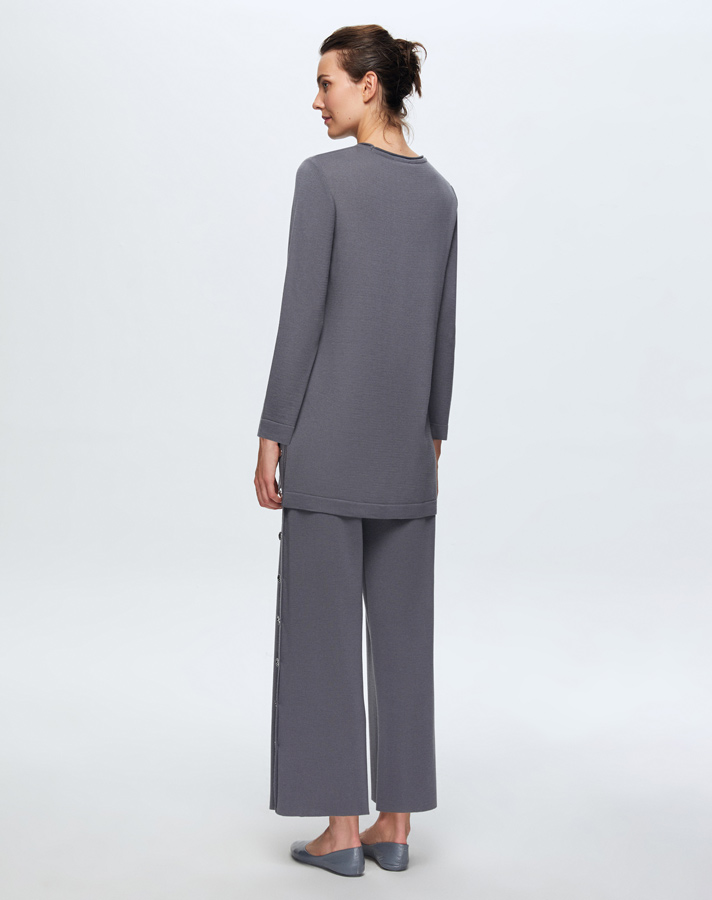 T24K-6015 Düğme Aksesuarlı Triko Tunik OMERO-DARK GREY