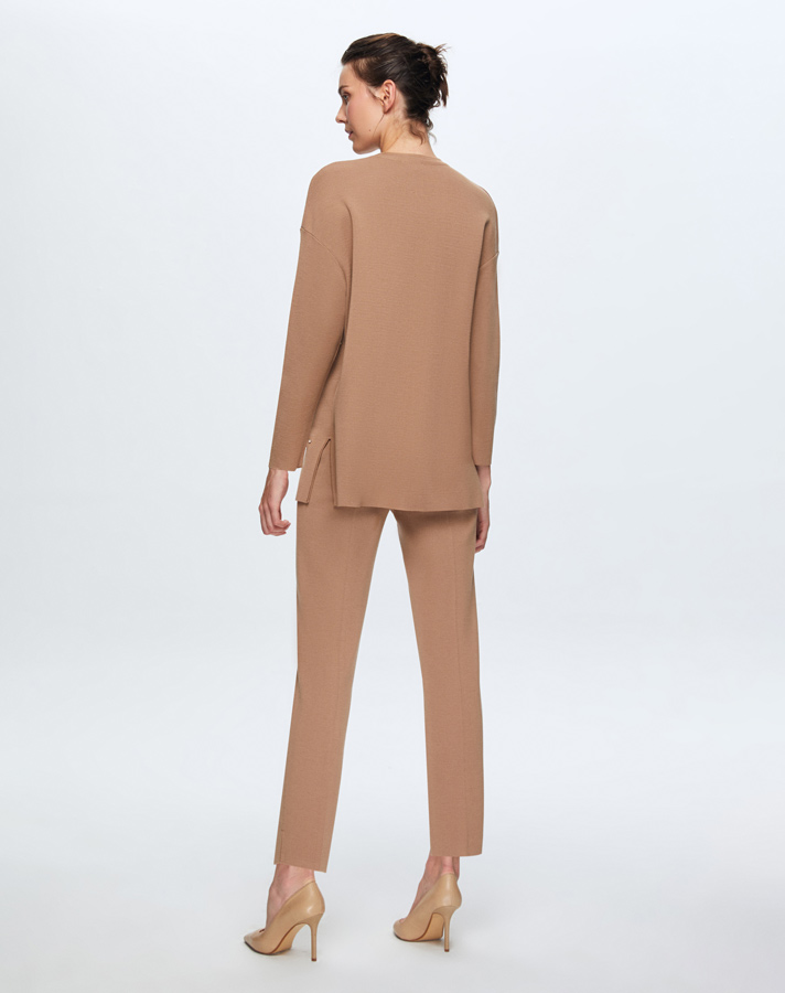 T24K-6025 Önü İncili Basic Tunik CORO-CAMEL