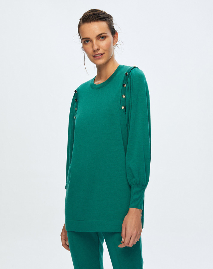 T24K-6026 Düğme Detaylı Balon Kollu Tunik IMOLA-EMERLAND