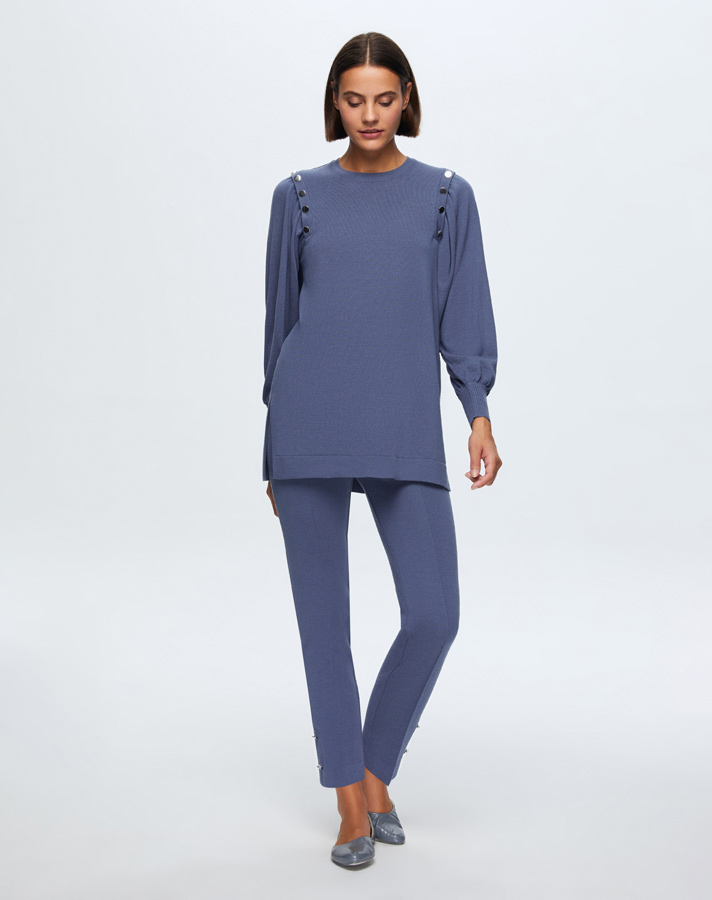 T24K-6026 Düğme Detaylı Balon Kollu Tunik PENNA-DARK BLUE