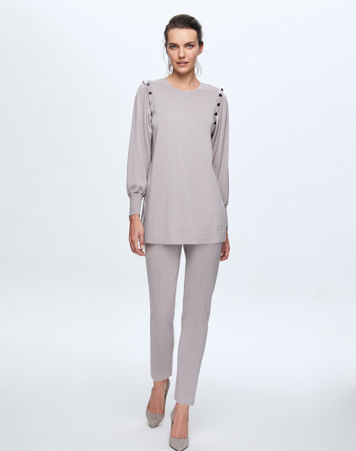 T24K-6026 Düğme Detaylı Balon Kollu Tunik TERRA-MİLKY