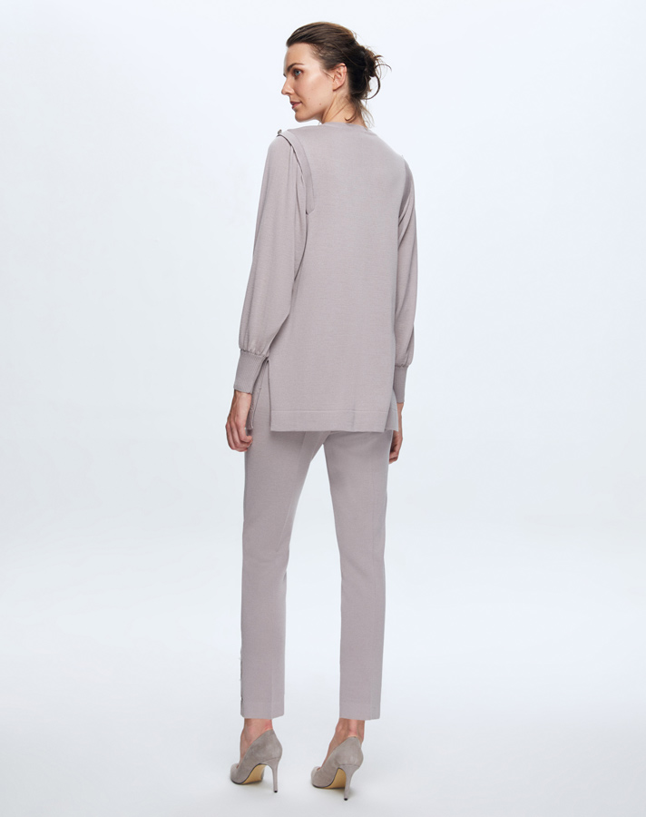 T25Y-6016 Cupro Erkek Yaka Düğme Aksesuarlı Triko Tunik 1179-GREY
