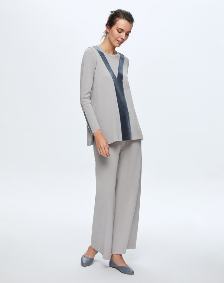 T24K-6027 Önü Kadife Detaylı Tunik VİLLA-GREY
