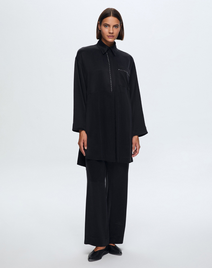 T24K-6029 Tek Cepli Kupro Tunik BLACK