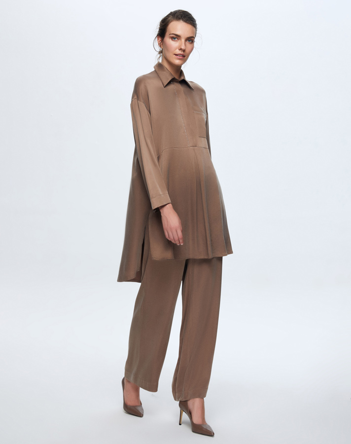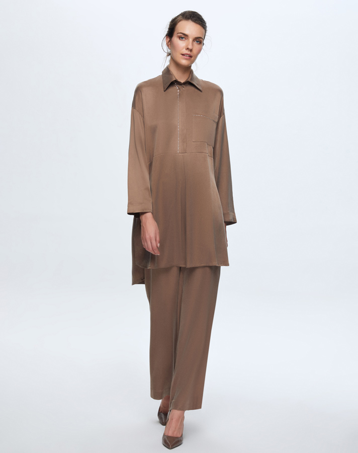 T24K-6029 Tek Cepli Kupro Tunik BROWN