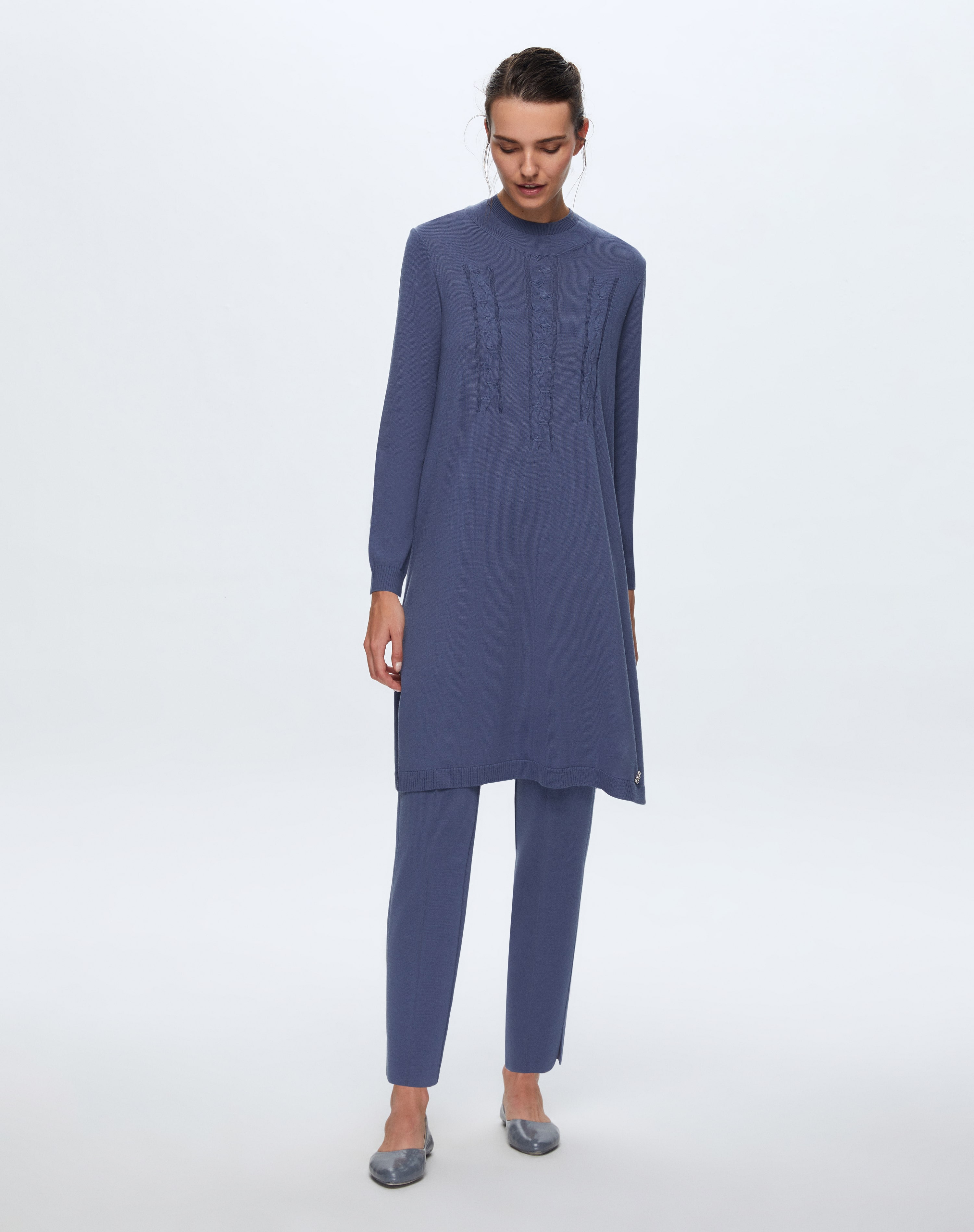 T24K-6030 Saç Örgü Detaylı Tunik PENNA-DARK BLUE