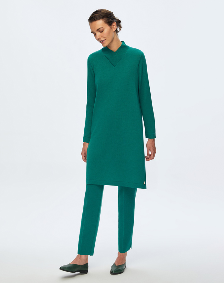 T24K-6031 V Yaka Uzun Triko Tunik IMOLA-EMERLAND