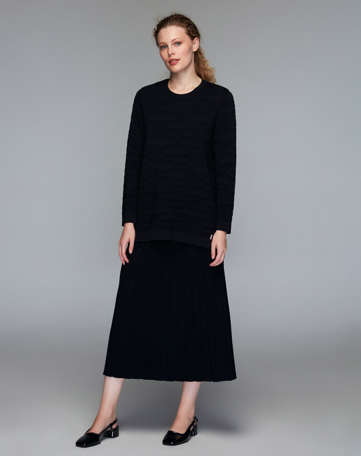 T24K-6040 Örgü Teknikli Tunik BLACK