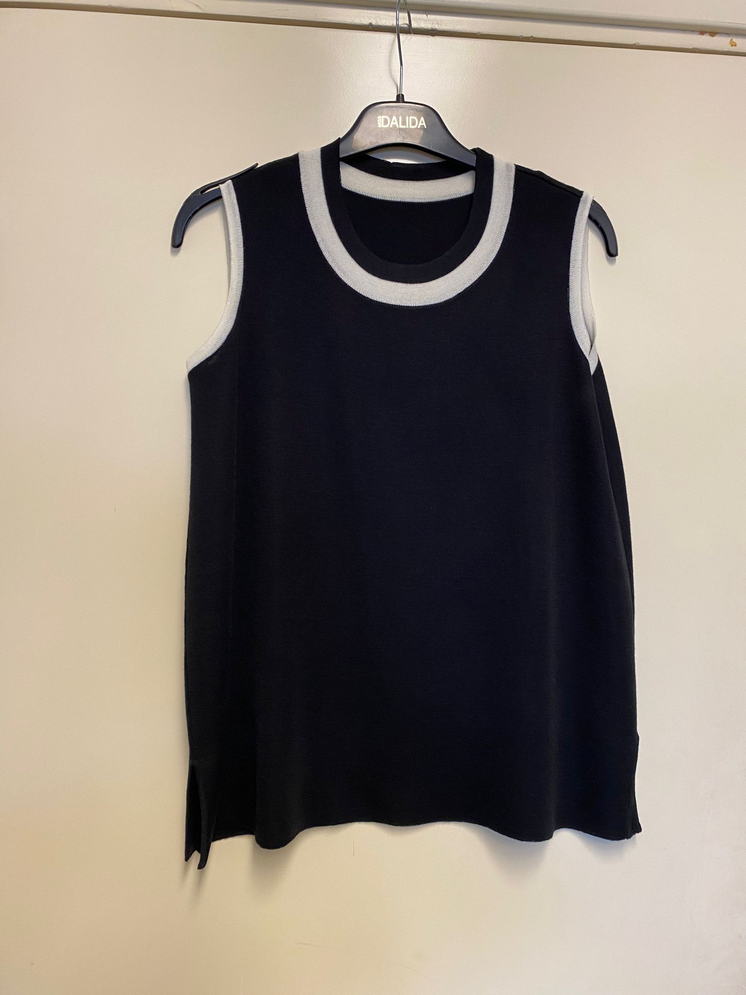 T24K-6041 Yakası Renkli Kolsuz Triko Tunik BLACK