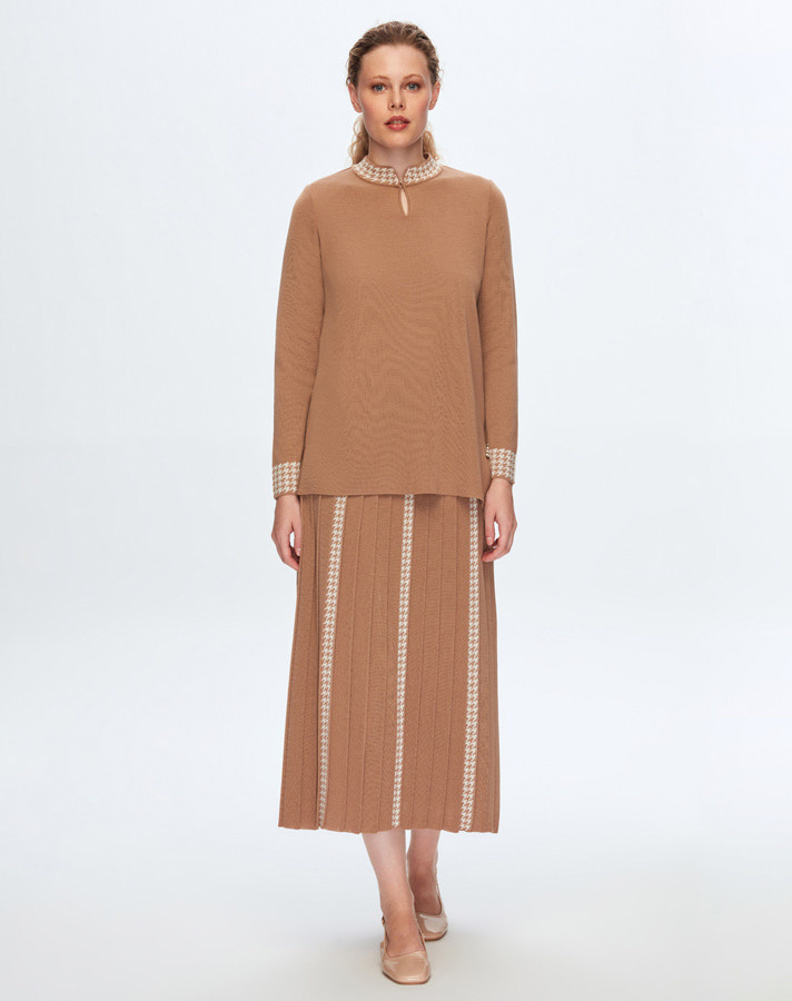 T24K-6044 Kazayağı Desenli Tunik COMO-CAREMEL