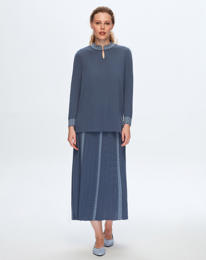 T25K-6021 Saç Örgü Dik Yaka Triko Tunik FONIA-RIVER