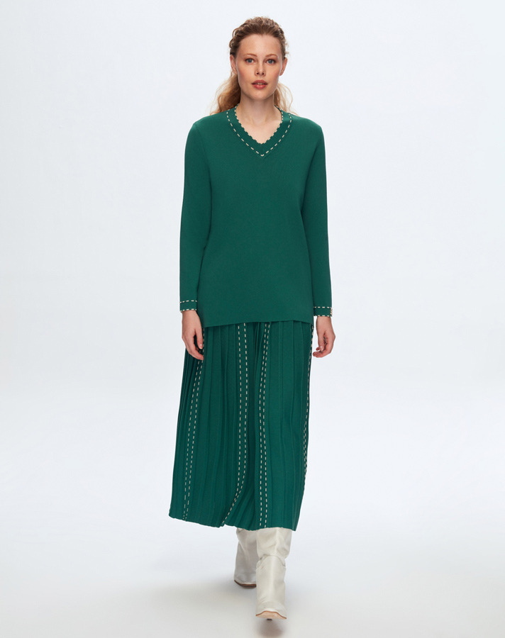 T24K-6045 Çizgi Detaylı Tunik 1056-GREEN