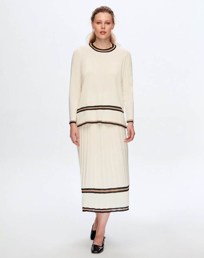 T24K-6049 Renk Şeritli Triko Tunik FEDE-ECRU