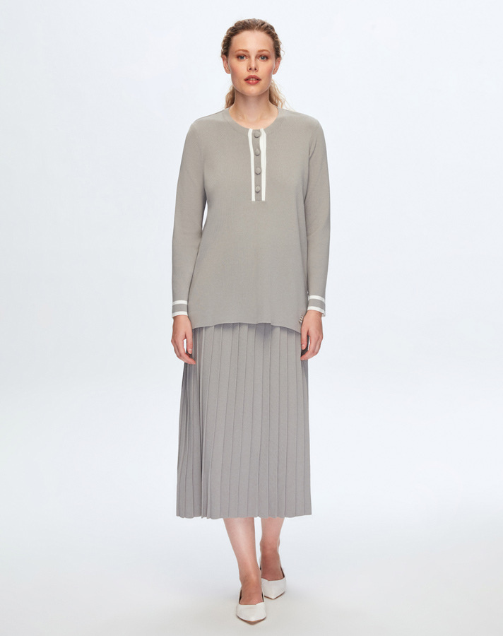 T24K-6071 Önü Düğmeli Tunik 1179-GREY