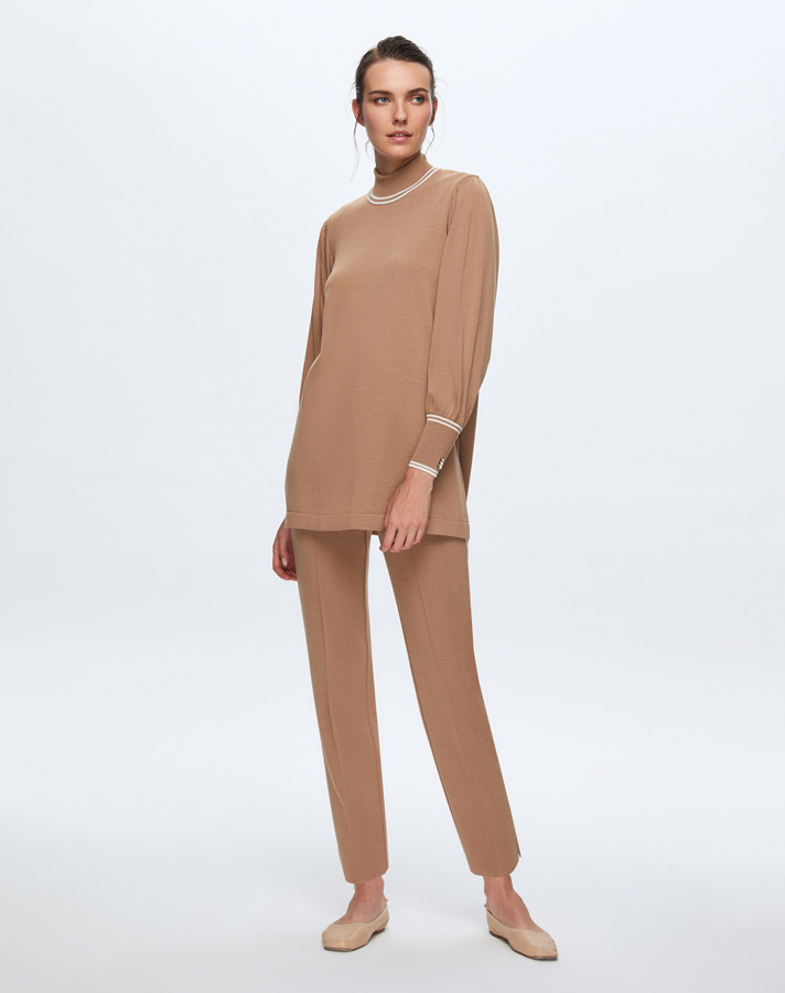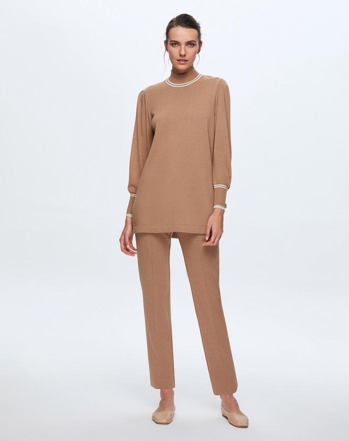 T24K-7000 Dar Paça Triko Pantolon COMO-CAREMEL