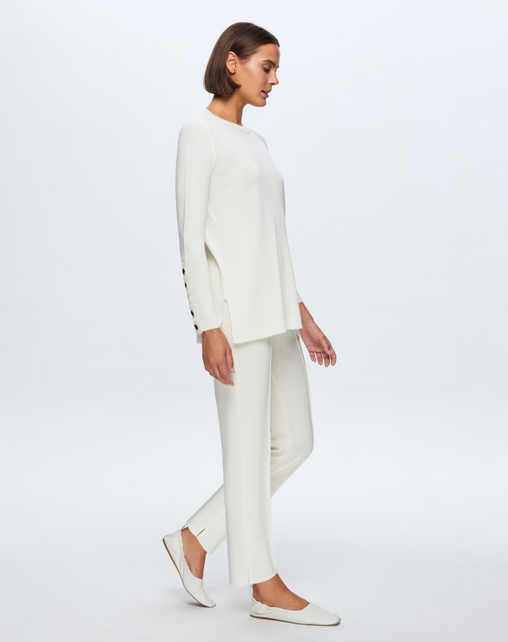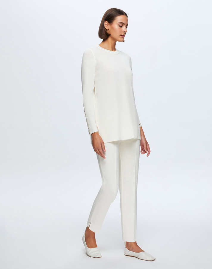 T24K-7000 Dar Paça Triko Pantolon FEDE-ECRU