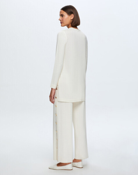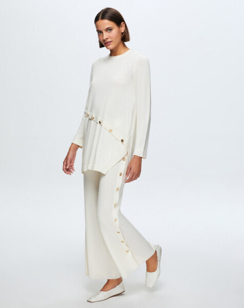 T24K-7003 Düğme Detaylı Bol Paça Pantolon FEDE-ECRU