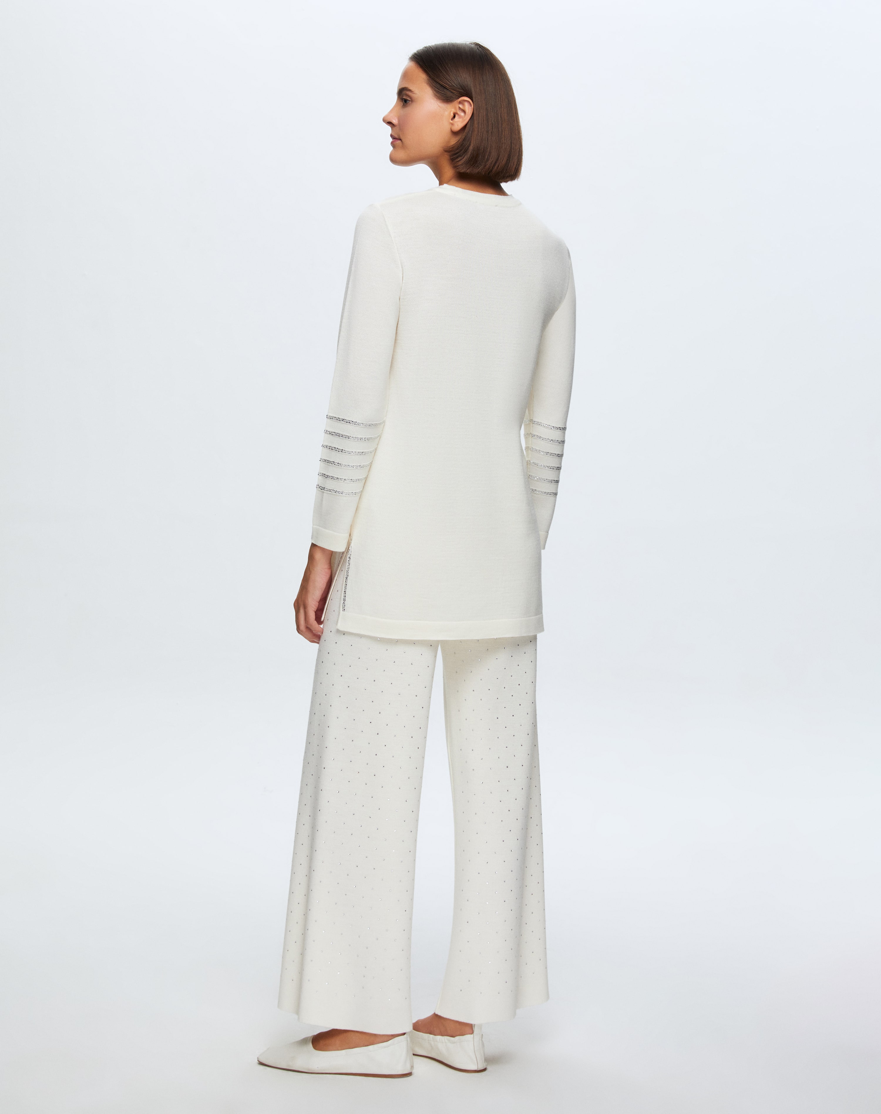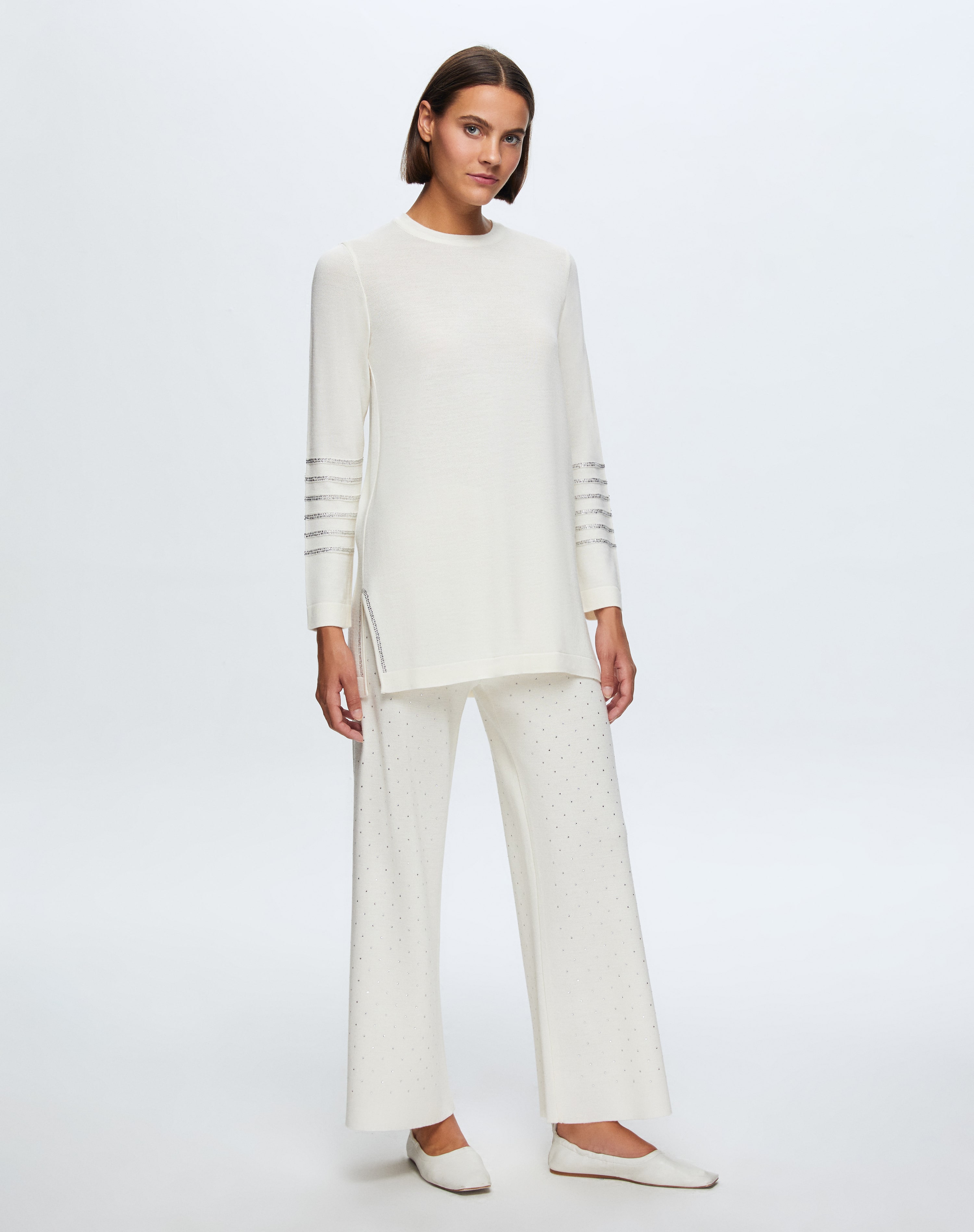 T24K-7006 Taşlı Bol Paça Pantolon FEDE-ECRU