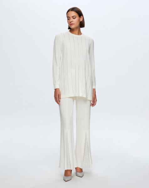 T24K-7011 Paçası Taşlı Triko Pantolon FEDE-ECRU