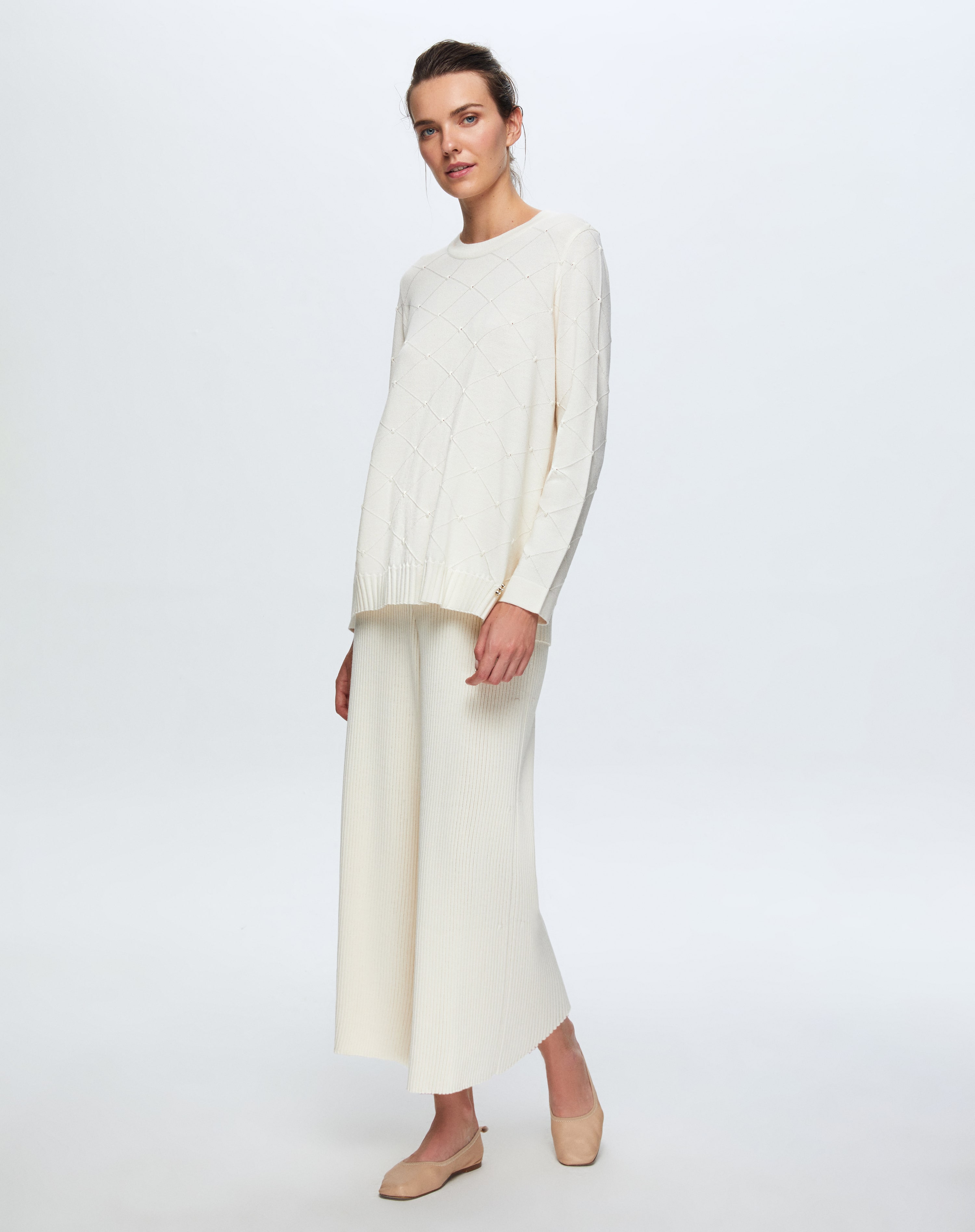 T24K-7012 Lastik Örgü Pantolon Etek FEDE-ECRU