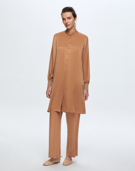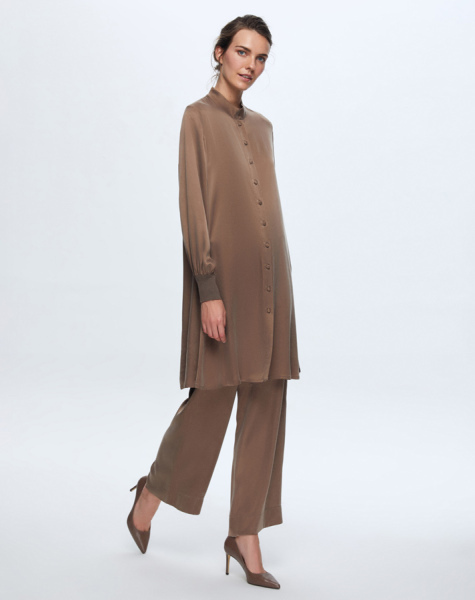 T26K-4008 Fermuar Detalı Cupro Elbise TAUPE