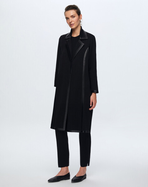 T25K-8003 Dikiş Detaylı Triko Kaban 8YR71-STONE