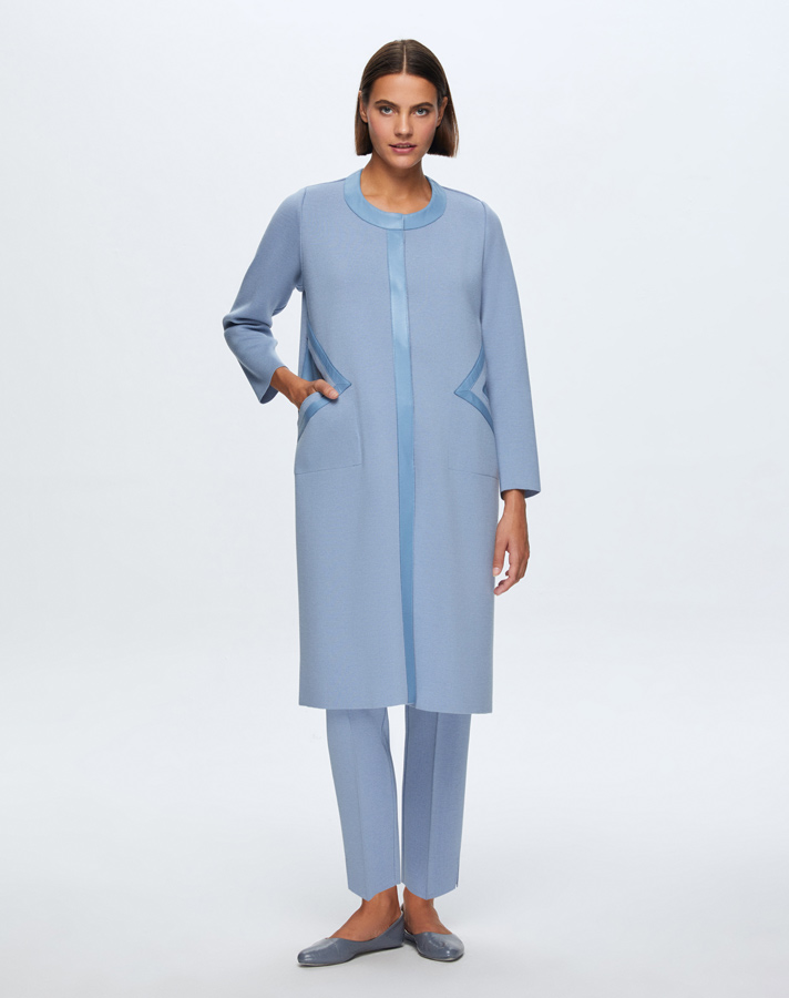 T24K-8009 Cep Detaylı Derili Triko Kap OVALE-BLUE