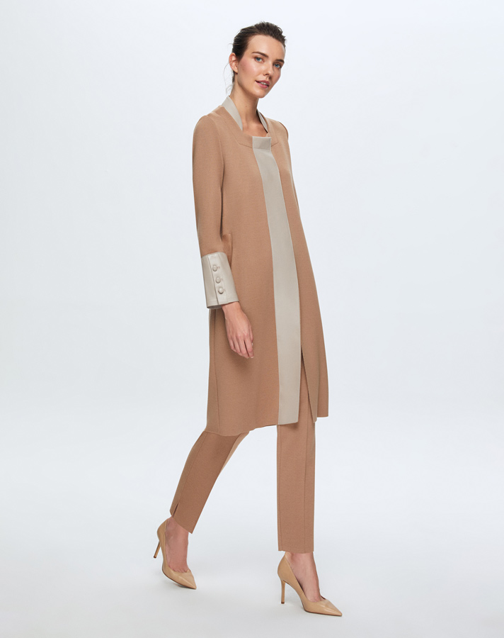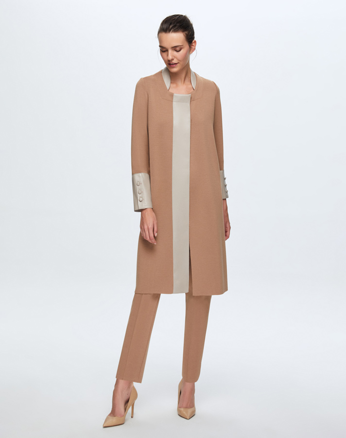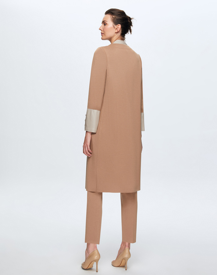 T24K-8010 Ön Patı Deri Detaylı Triko Kap COMO-CAREMEL