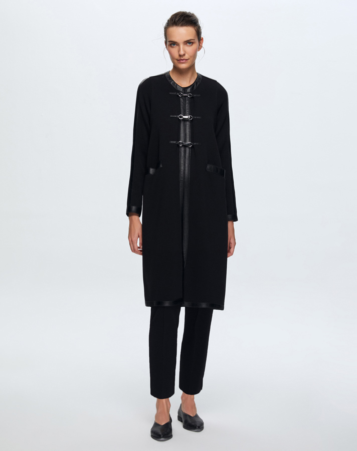 T24K-8011 Deri Detaylı Agraf Kapamalı Triko Kap BLACK