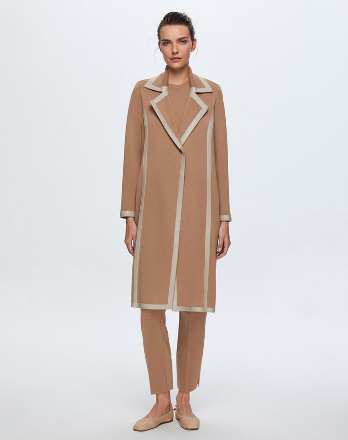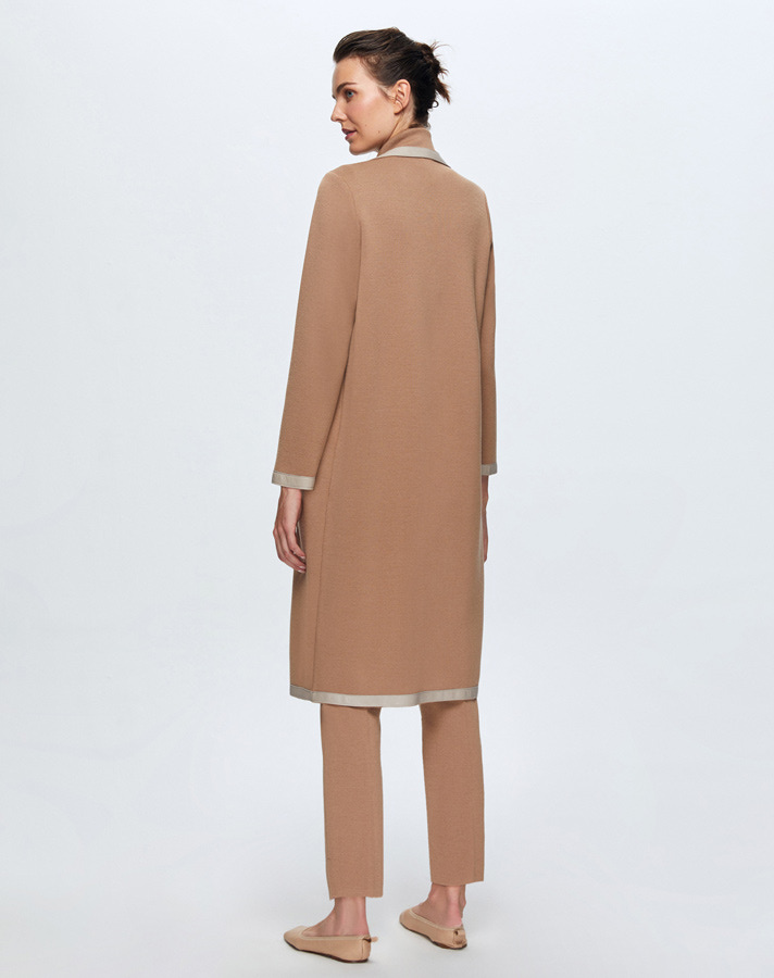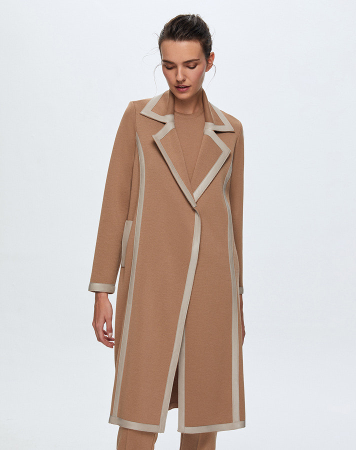 T24K-8012 Deri Detaylı Erkek Yaka Triko Kap COMO-CAREMEL