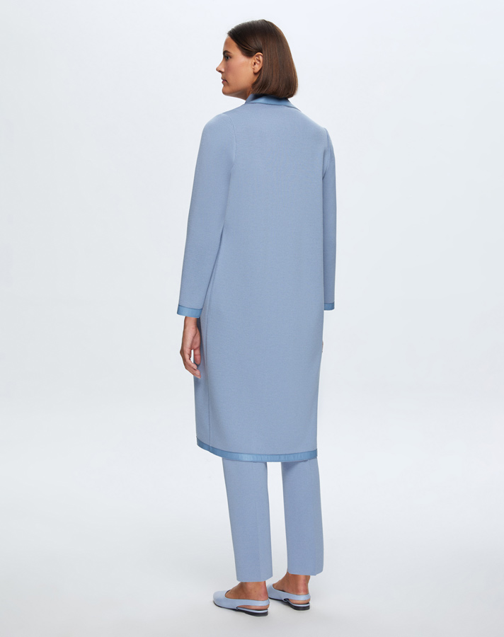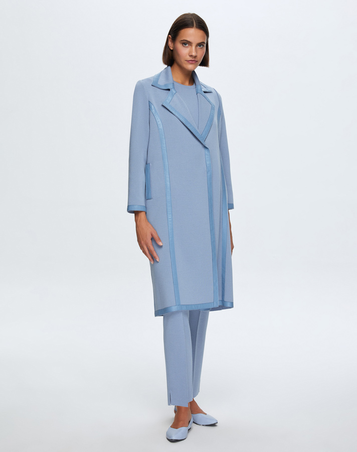 T24K-8012 Deri Detaylı Erkek Yaka Triko Kap OVALE-BLUE