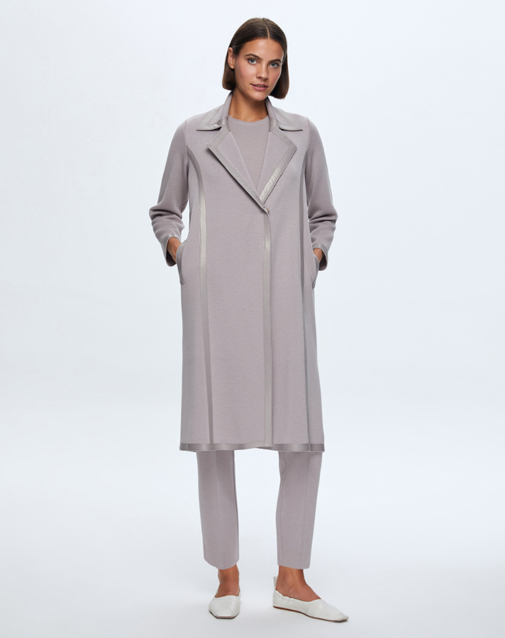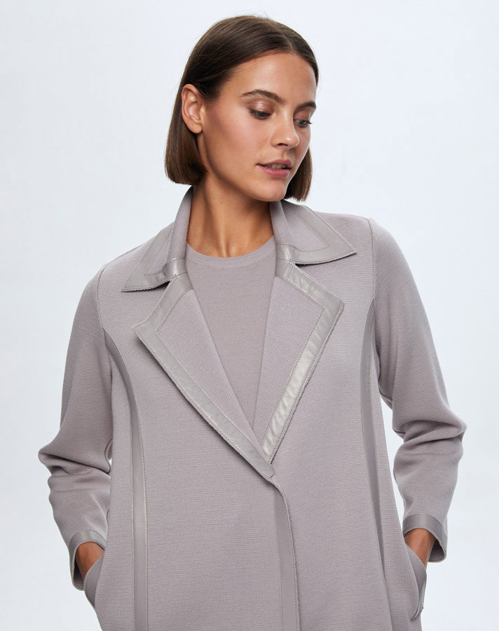 T24K-8012 Deri Detaylı Erkek Yaka Triko Kap TERRA-MİLKY