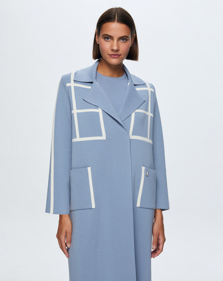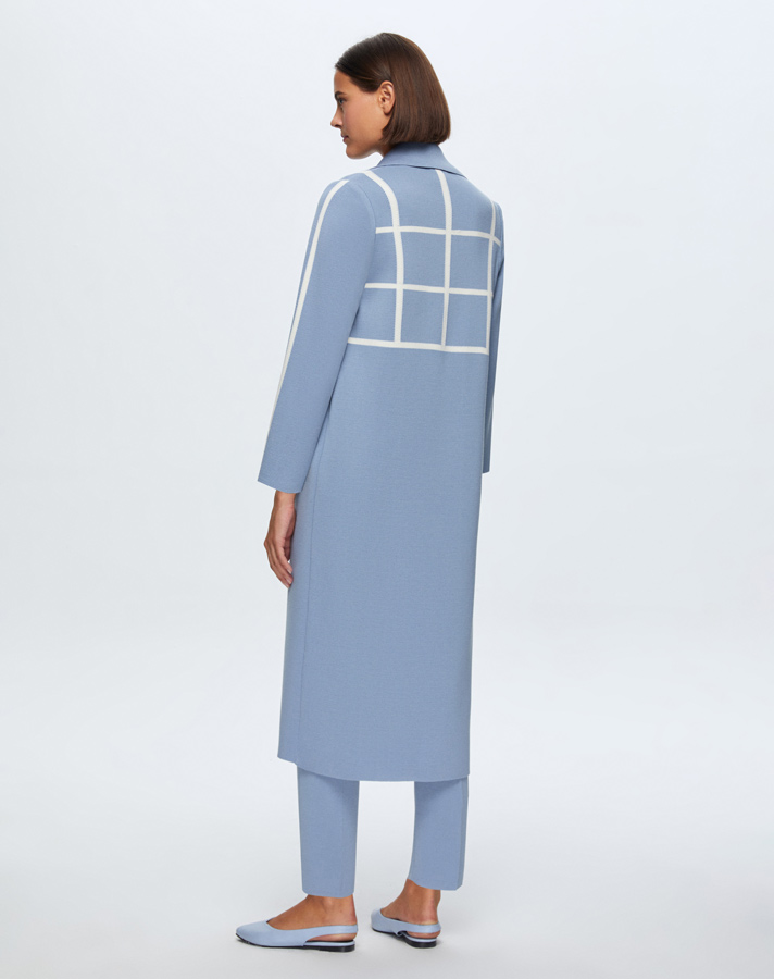 T24K-8013 Kare Desenli Uzun Hırka OVALE-BLUE
